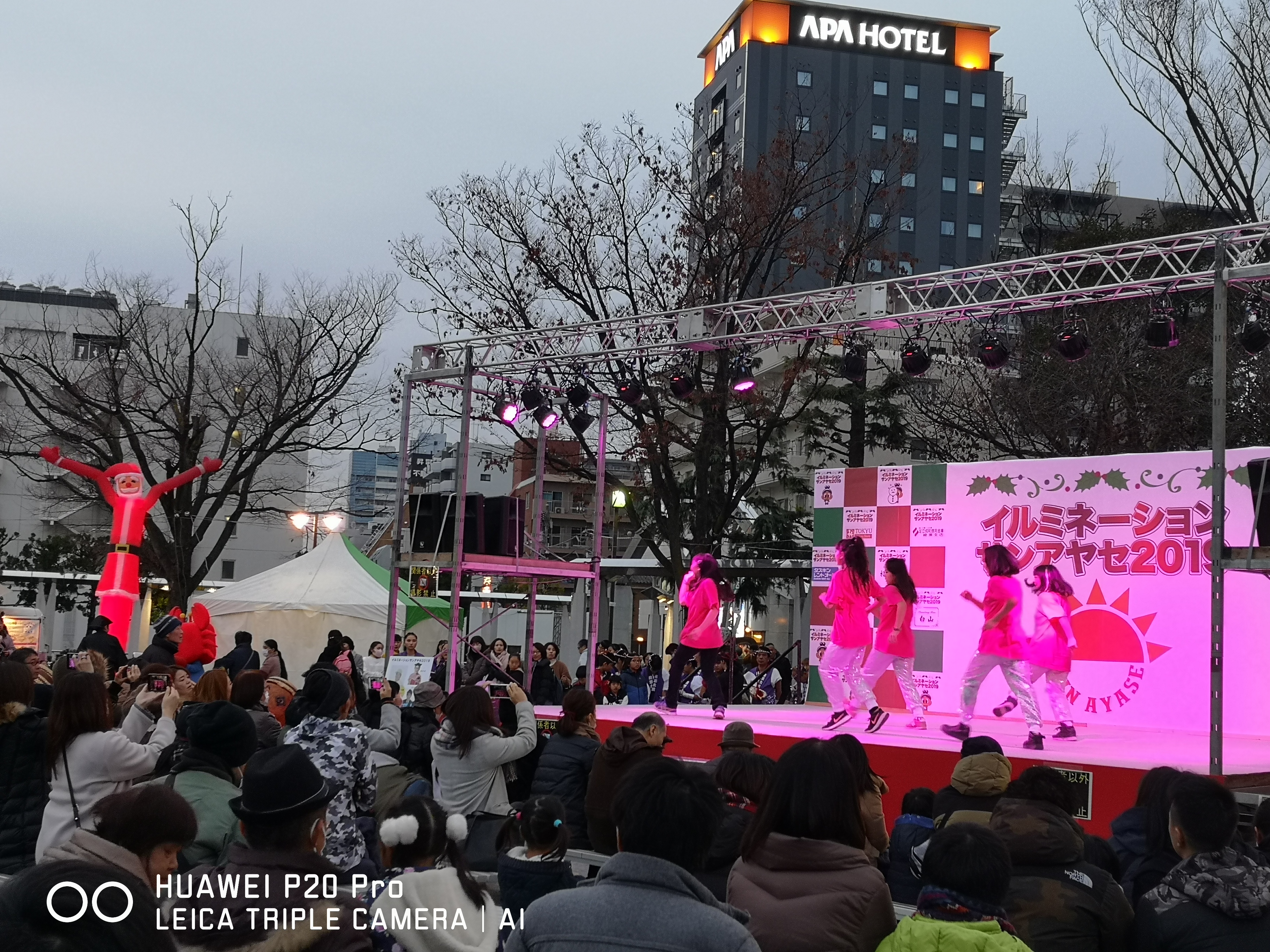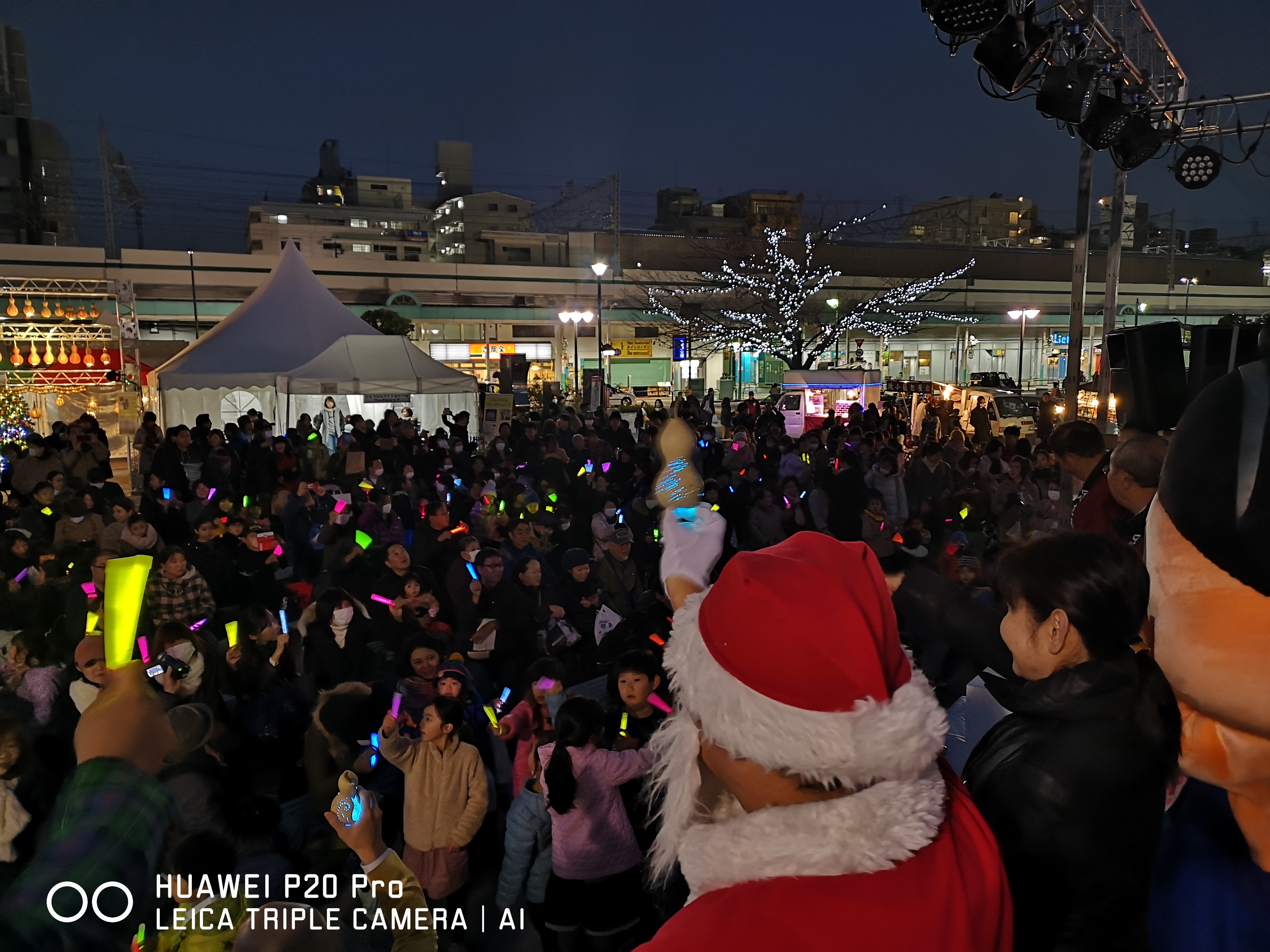 公園内のツリー型のイルミネーションが、綾瀬駅周辺を色鮮やかに照らしました。