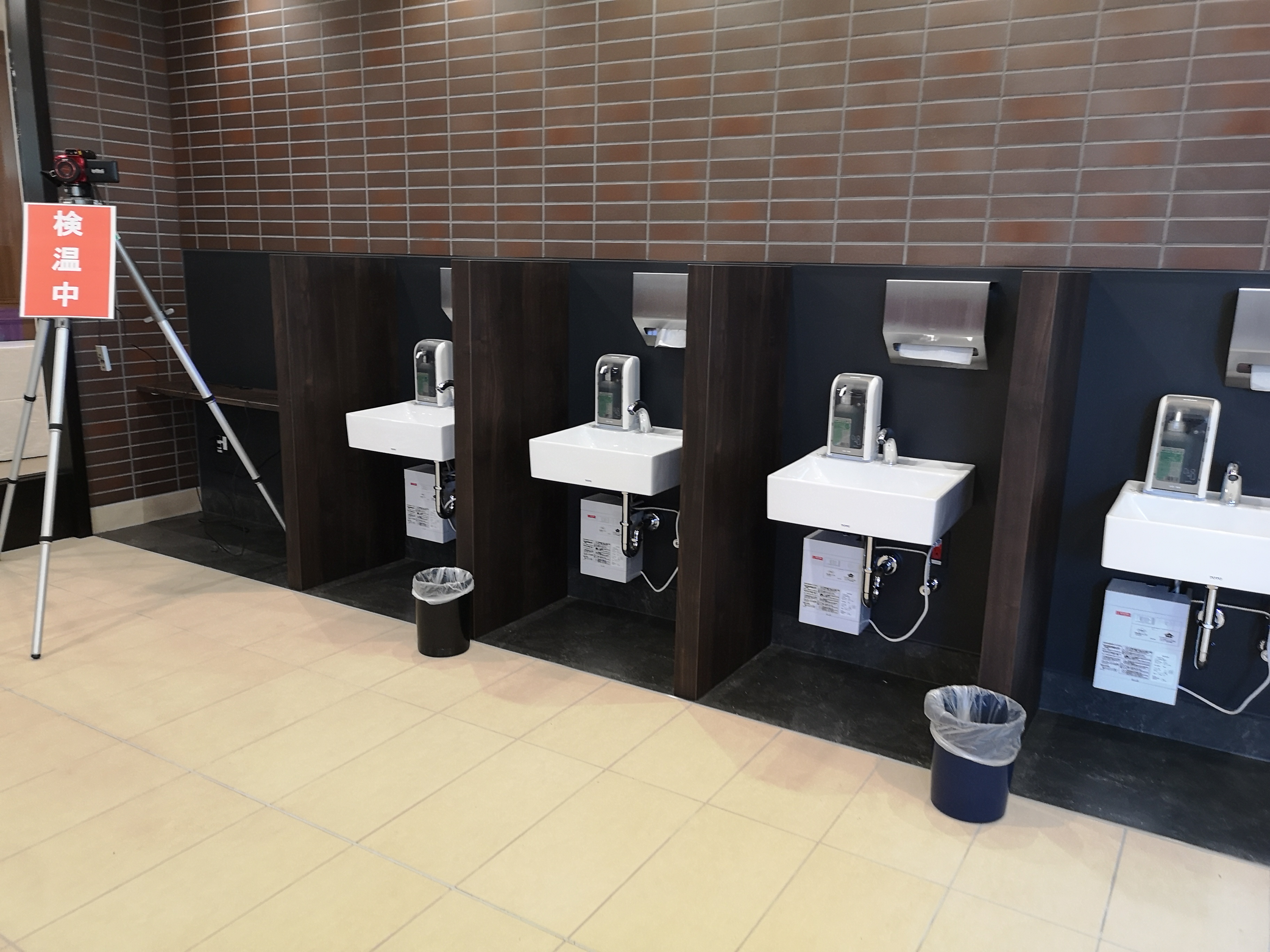 病院に入る前に手洗いができます。
